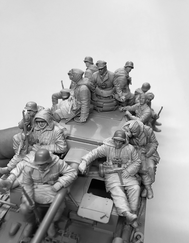 Но эти же фигурки можно использовать и на зиму 43-44, эти парки вполне использовались и после «Харькова» до конца войны. Я еще пару егерей сделаю для него и трофейный с нашими бойцами.