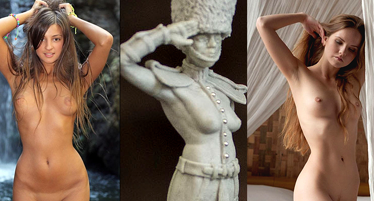 Если интересен взгляд со стороны, то в анатомии Вашей девушки первое, что сразу бросается в глаза - грудь "уползла" слишком вниз. При том, что она не 5-го номера, а достаточно небольшая. И тем более, что при поднятой руке она должна относительно спокойного состояния приподняться ещё выше.