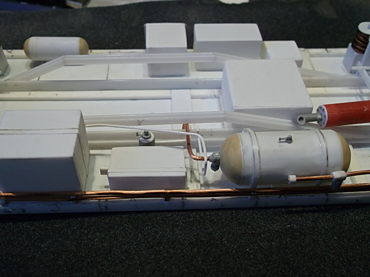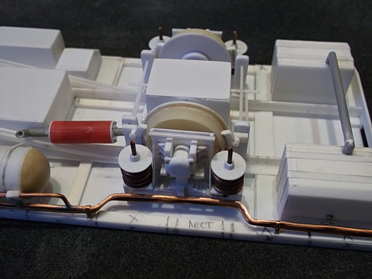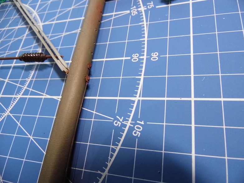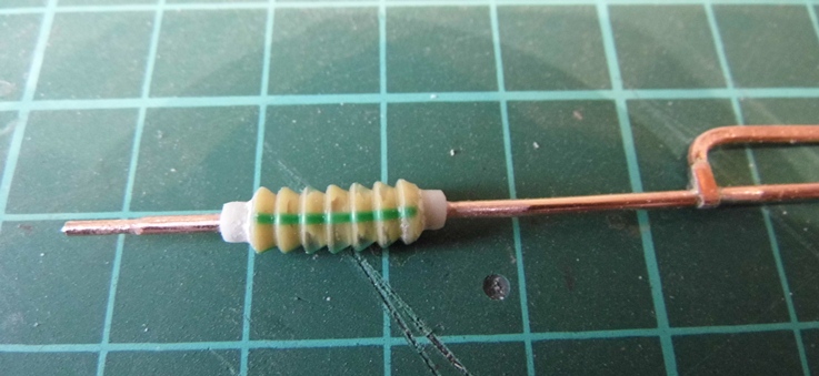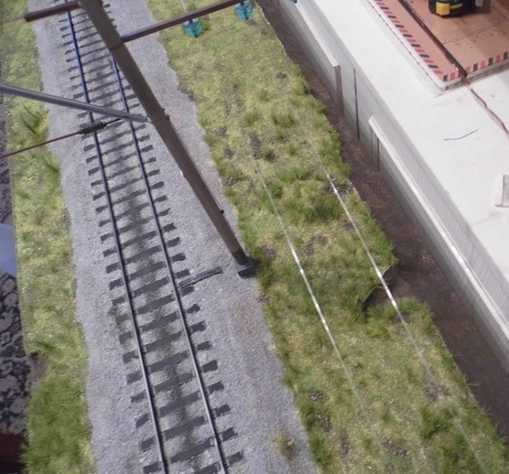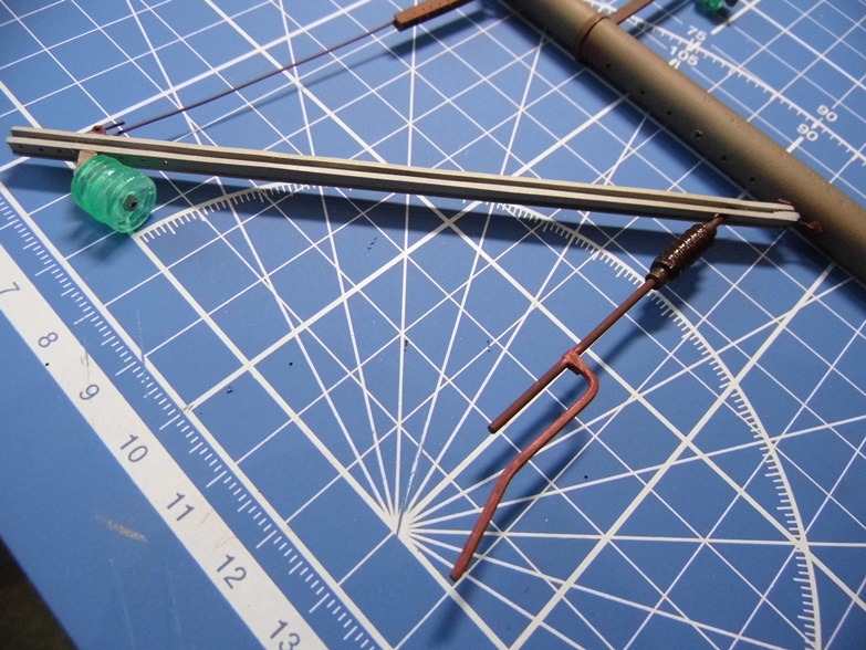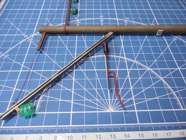 Монтирую контактный провод. После пайки покрасил акрилом Model Air. С алюминиевыми проводами еще не занимался (блестят на заднем фоне).