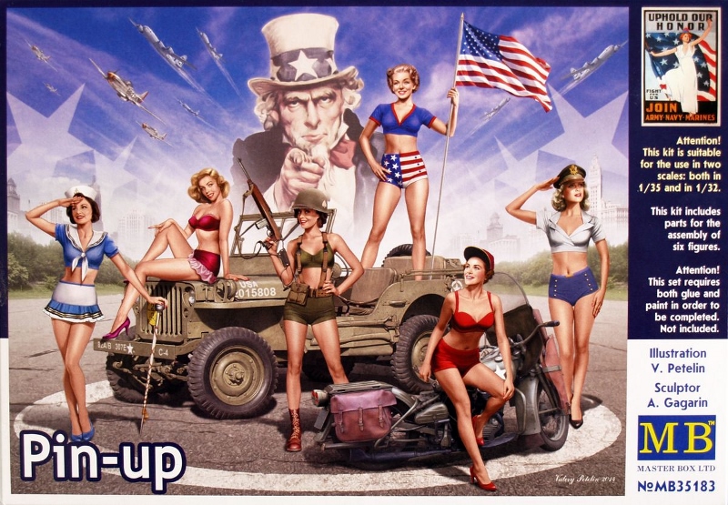 два вот таких набора:Я раньше видел и читал отзывы про первый пинап-имхо.Но открыл коробки,посмотрел-не так уж все и плохо,есть с чем поработать.На всякий случай закажу у "Армор-35" женские головы(уже запустили):Если честно,в 3-д можно было и поинтересней придумать.