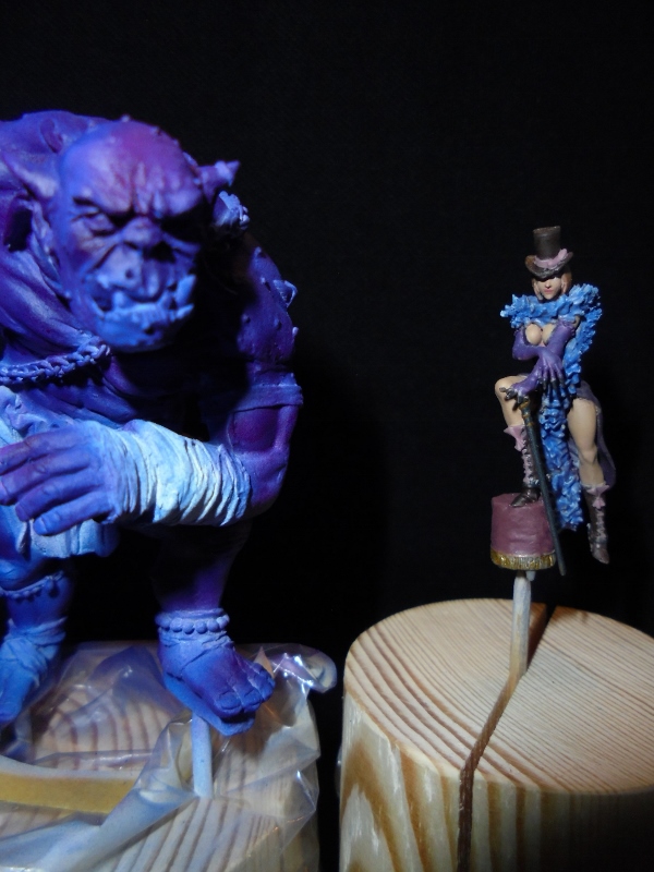Ну что весна-время фентези.Вернулся к миниатюре "Орк" 75 мм от скульптора Сергея Савенкова фирмы "Тартар миниатюрс".Вот такой вот пока красно-фиолетовый"синяк" вырисовывается:На проверку орк оказался довольно крупным,наверное под размер 90 мм,для сравнения размеров еще вот такая барышня из мира "Малифо" 28 мм в базовых цветах:Только не пугайтесь,это всего два базовых цвета,всего будет пять и Орк похорошеет.