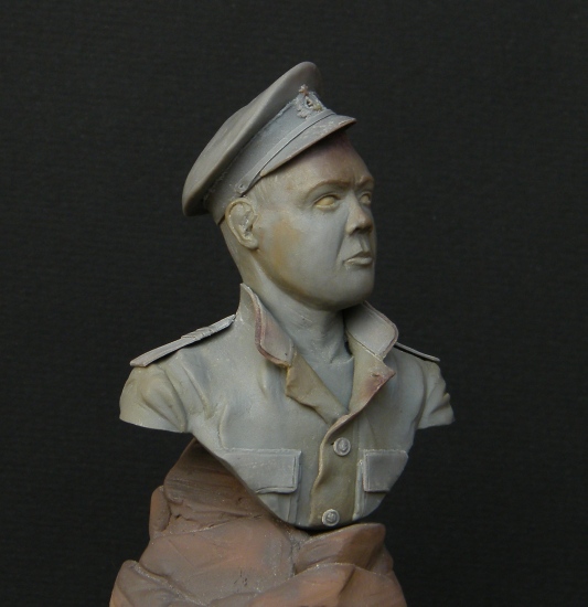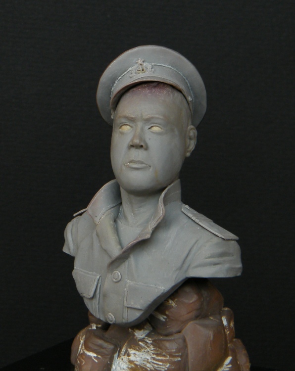 Дмитрий Шишков, Эх, здорово получается. Только одно ИМХО, с вашего позволения, не относящееся к скульптурной части работы: фуражка по-залихвацки так на затылок сдвинута, а лицо - суровое. Так-то не особо вяжется образ. Но это, повторюсь, из разряда мизерных придиризмов. Работа же сама по себе - просто великолепна.