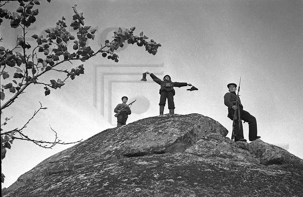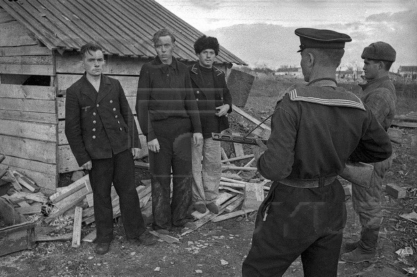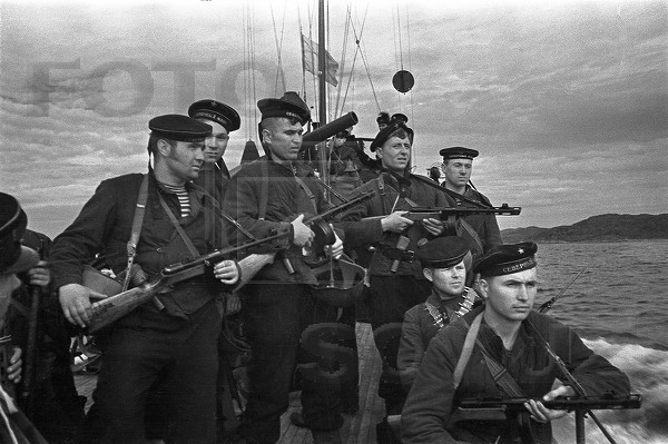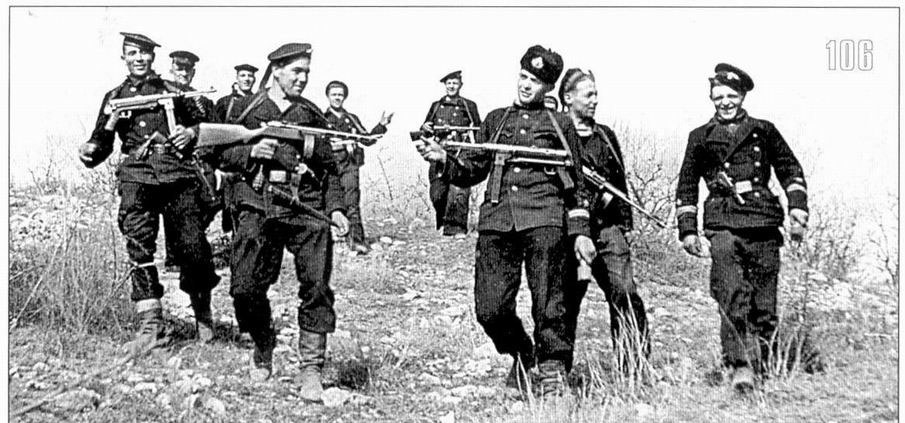 Вот нашел у себя немного фото моряков в брюках заправленных (или предположительно заправленных) в сапоги. Характер складок совсем другой.