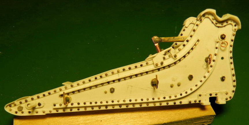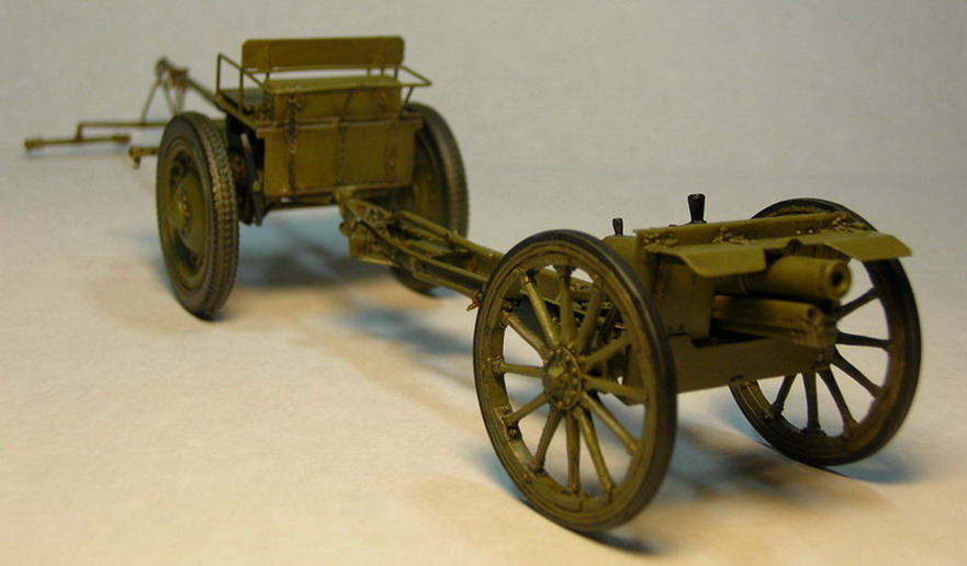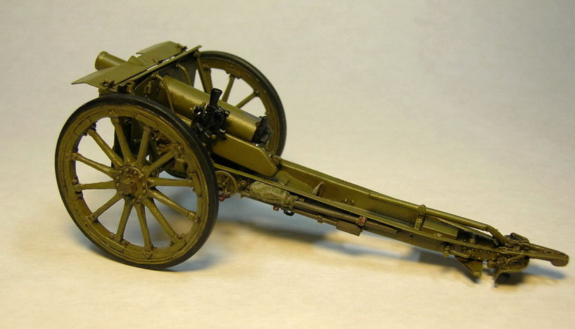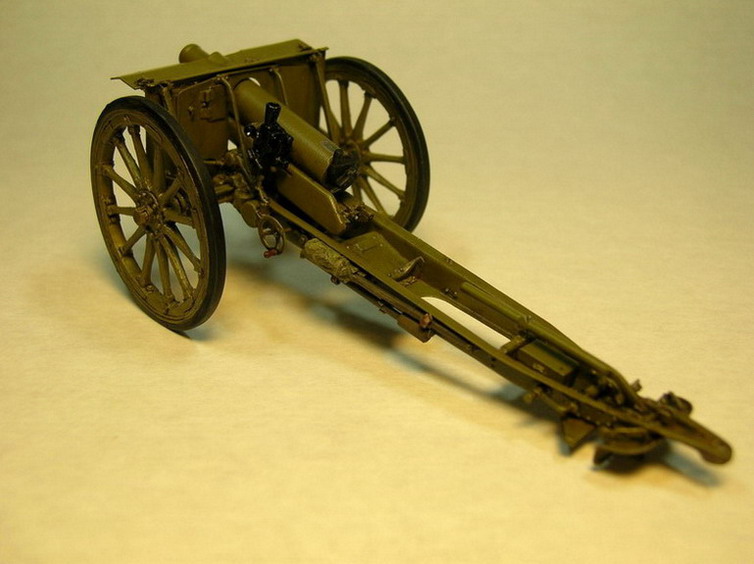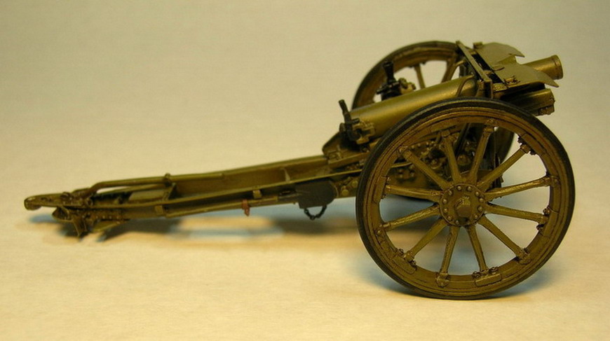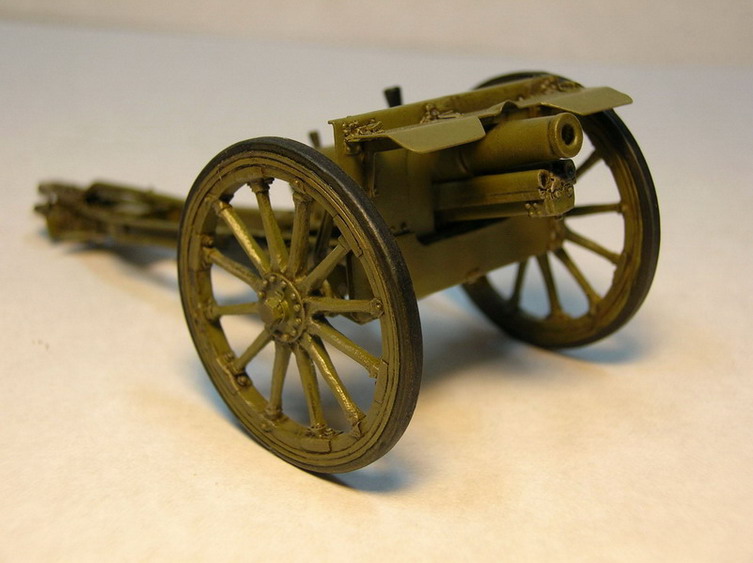 Лафетные щёки склеил из полистирола толщиной 0,3 мм. и уголков 1,5х1,5 мм. Усиления из уголков на наружних сторонах щёк появились уже в Русско-Японской войне (на опыте применения), а в Первой Мировой войне, это было уже сделано повсеместно.