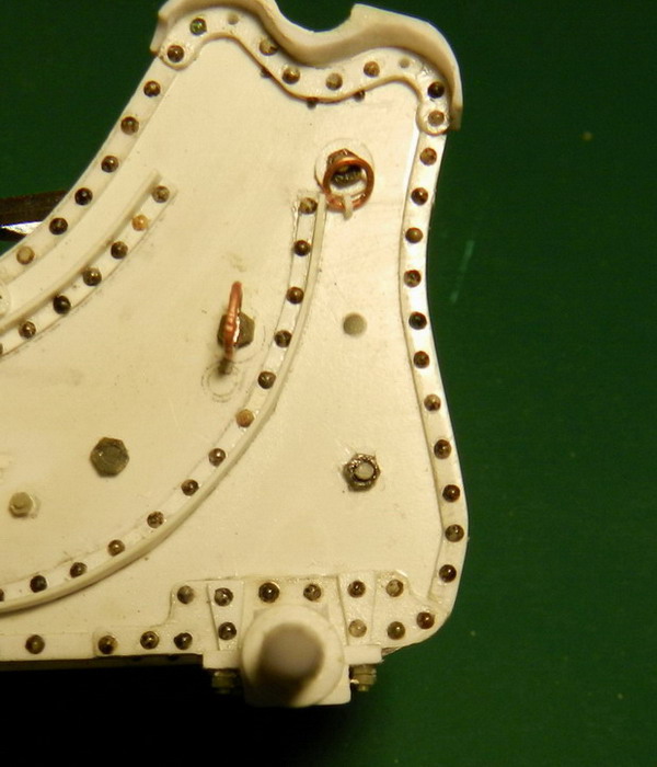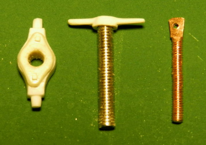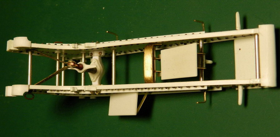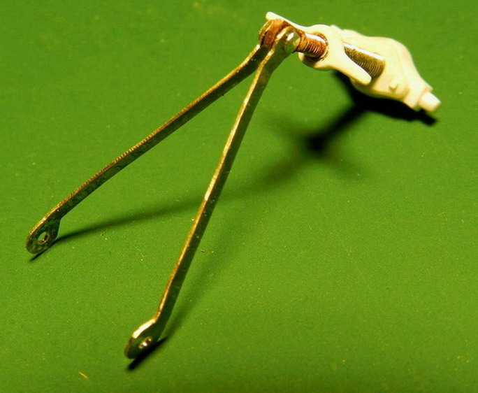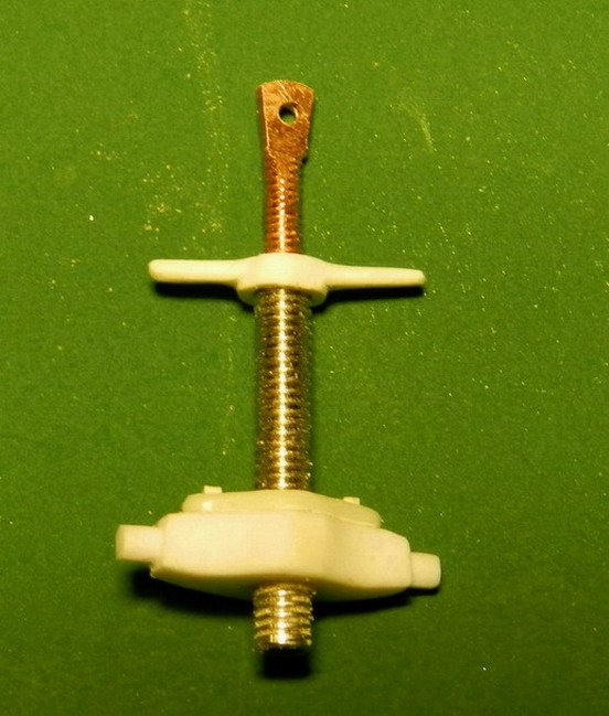Потмхоньку продолжаю. Сделал поъёмный механизм. он состоит из матки, трубы-винта и внта сголовкой.Матка из полистирола, труба из стальной донорской игры, сам винт из медной проволоки. На трубе нарезана внутреняя и внешняя резьба, на винте резьба 1,8 мм. Внешняя резьба на трубе должна быть обратной резьбе на винте. Но у меня не оказалось этих плашек и пришлось нарезать обычными. Собрал механизм и приклепал к головке винта две тяги из латуни.