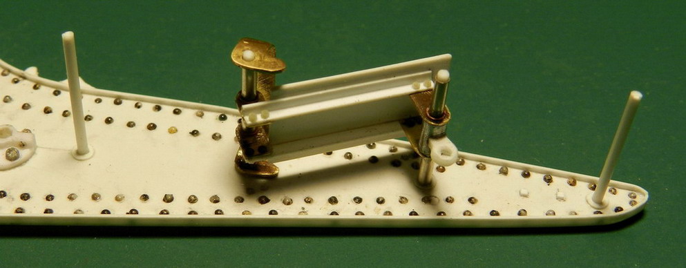 Далее изготовил подножку для расчёта между станинами лафета и вклеил внутрении попреречины из полистирола диаметром 1 мм.