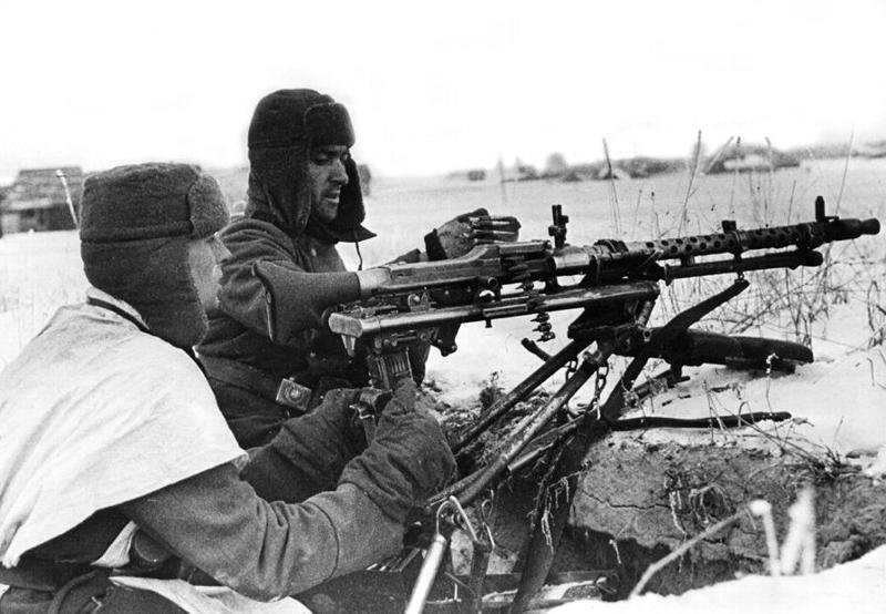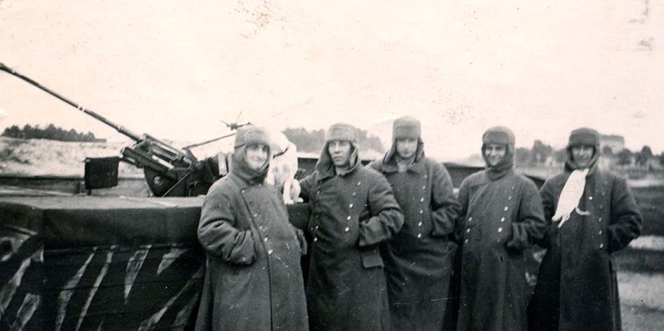 На первом фото - зенитчики. Все в советских ушанках!