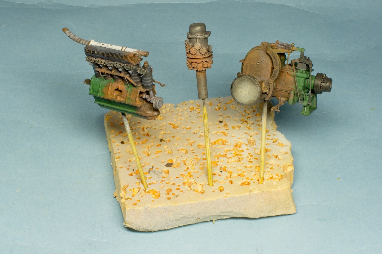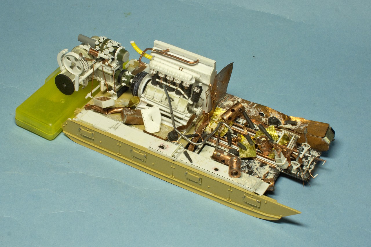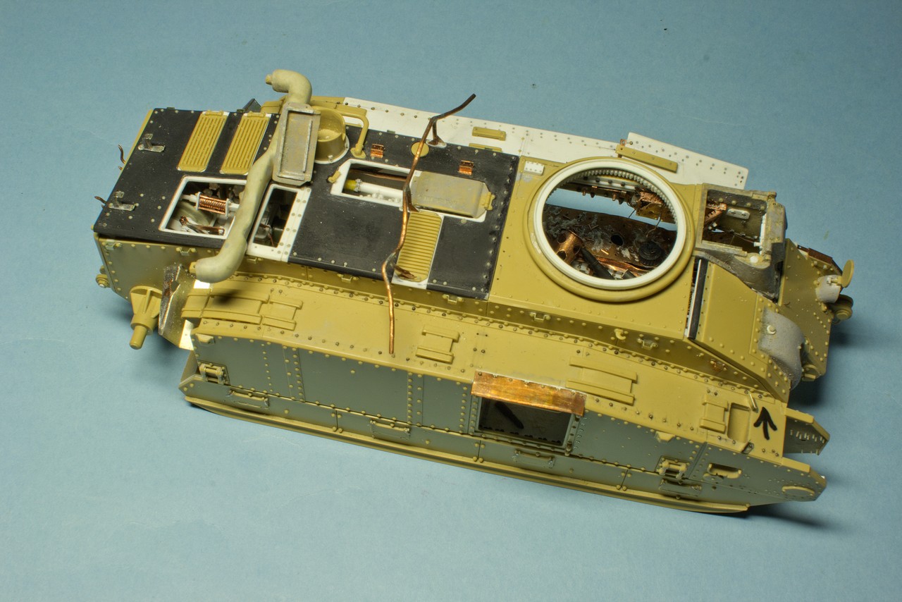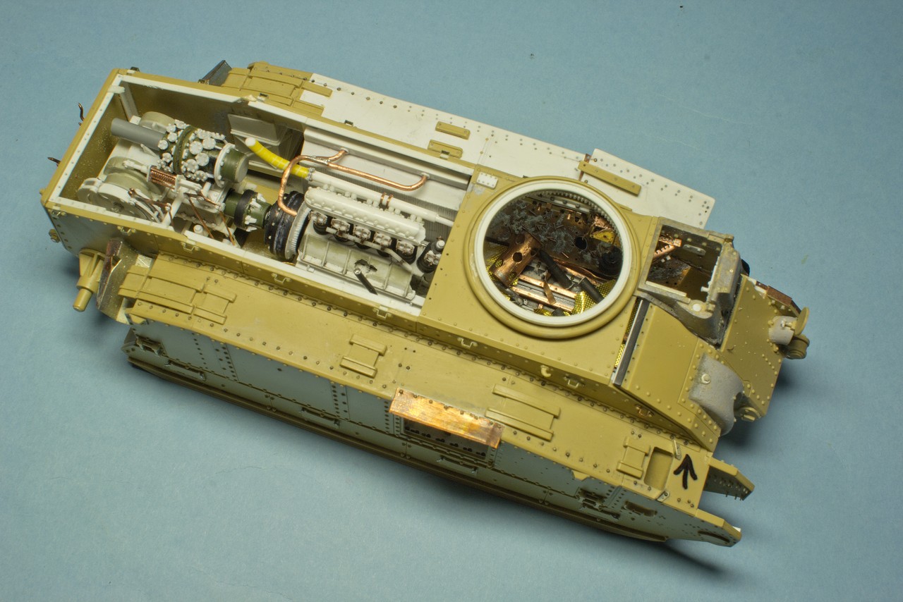Давно слежу за вашим блогом и с большим уважением отношусь к вашему титаническому труду.К интерьеру испытывал те же чувства.Были мысли разрезать поперек как бы автогеном с оплавившимися,покрасневшими краями и красить интерьер по полной.Но перешел на фигуры,поэтому задвинул идею в стол.Могу посоветовать посмотреть журнал М.Джиминеса"Стили".Там есть шедевральная диорама с разбитым танком ТСМ-2С.Может вам замахнуться на,так сказать,...?Удачи в нелегком труде!