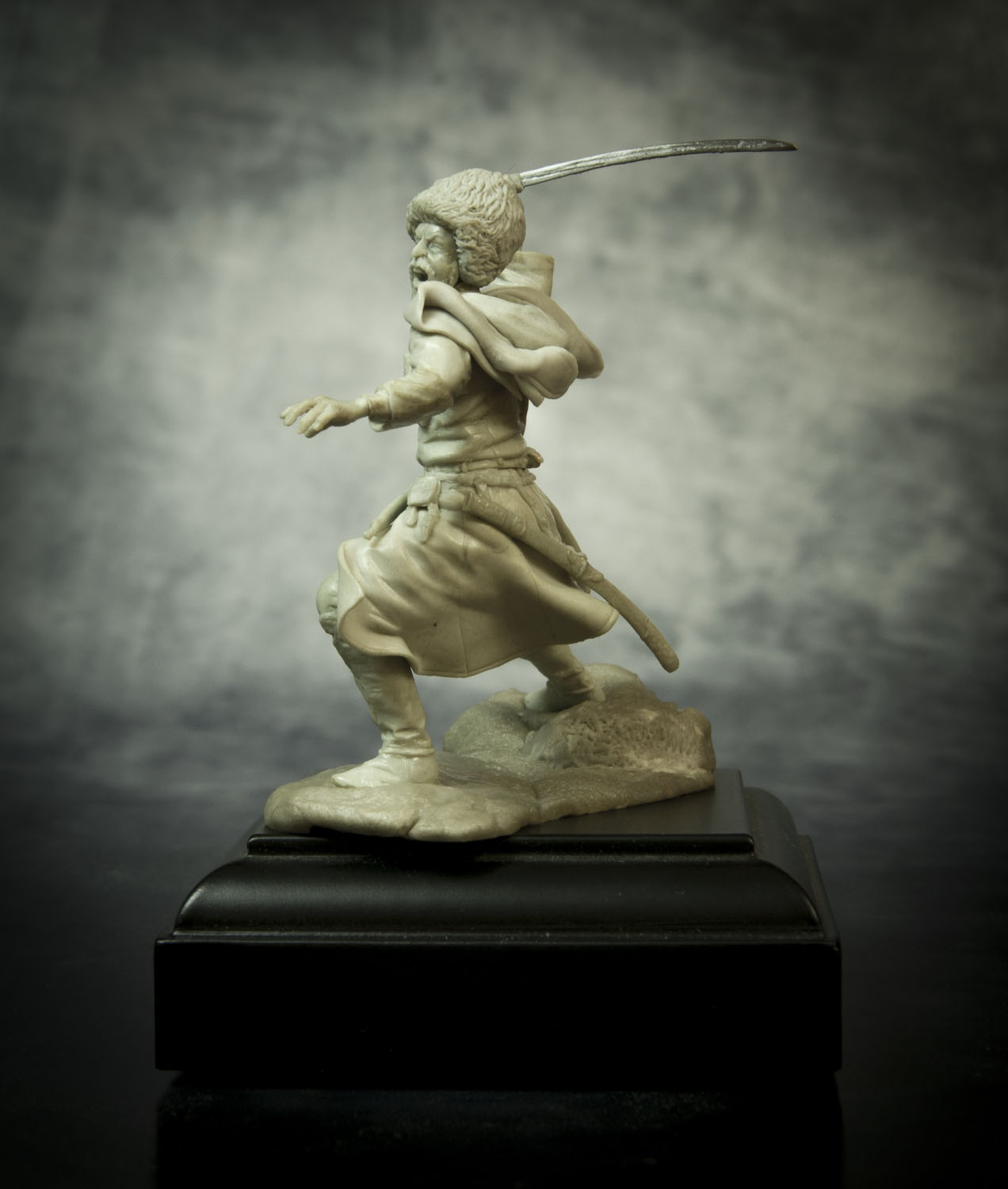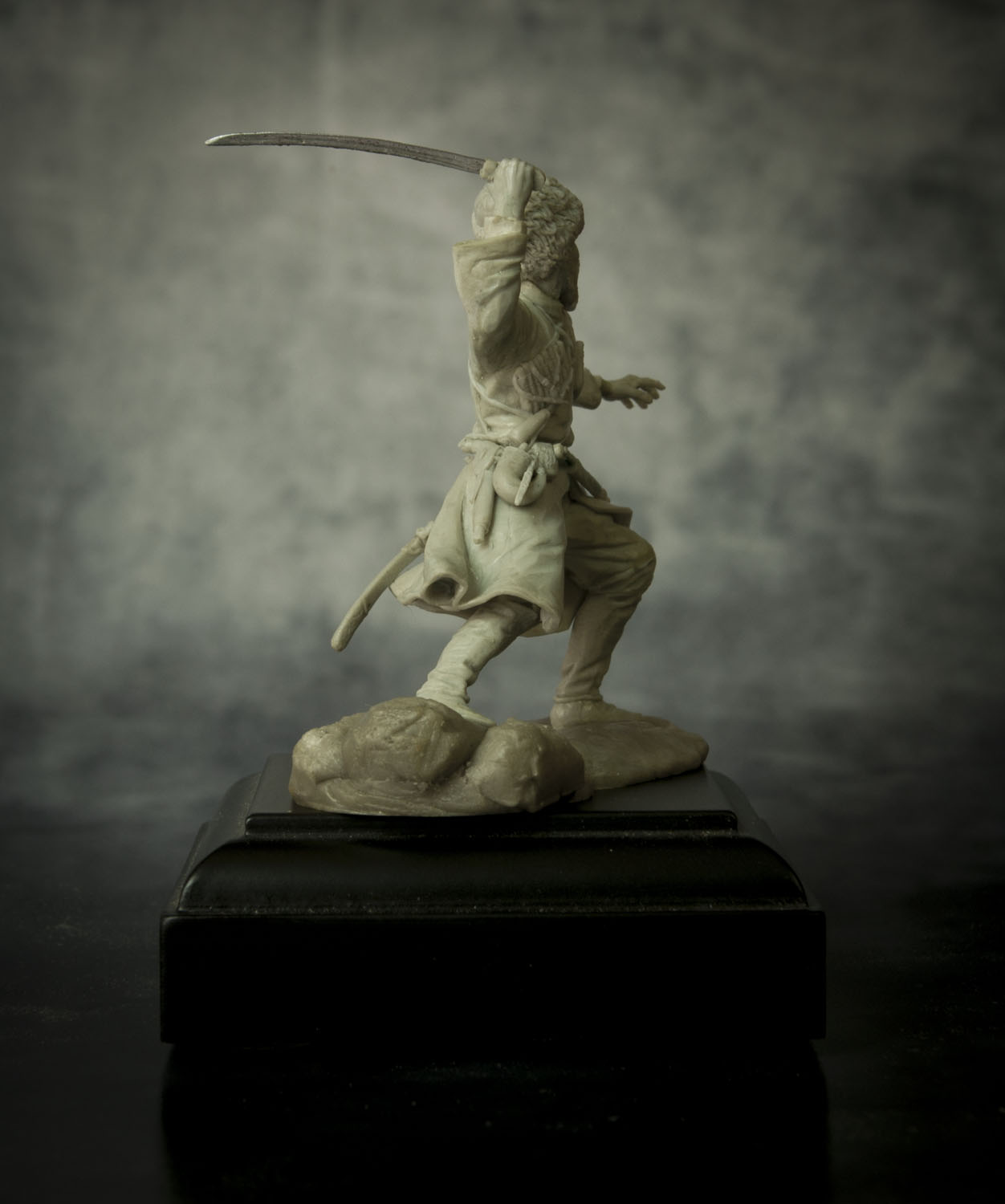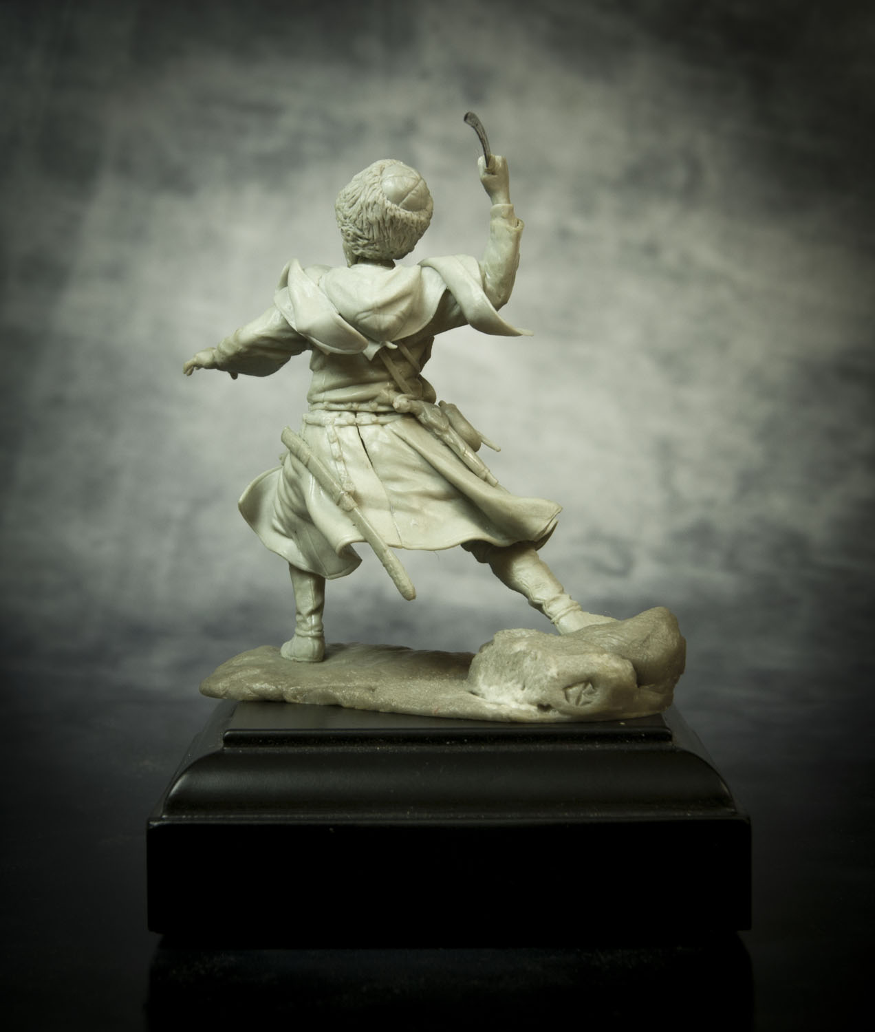 По поводу позы, поверьте, но это лучшее, что возможно было из этой позы сделать. А именно: не так давно, на другом форуме, тамошний админ решил провести конкурс - типа есть картинка, некоего Captain Orlando Ruben Mendoza, вот участники ее и будут лепить, с как можно наибольшим соответствием именно оригинальной картинке, вот только эпоху и персонажа можно было выбрать на свое усмотрение. К сожалению на картинке поза анатомически ошибочна. Картинку, того самого то ли паралитика, то ли того, кому только что судорогой спинные мышцы свело, то ли того, кого только что пчела промеж лопаток ужалила, я прикрепляю ниже, дабы вы сами смогли оценить, что на тех условиях, с максимальным соответствием позы, это действительно лучшее, что с такой позой можно было сделать.Игорь Немилов Wrote: Поза неестественная. Создаётся впечатление, что разные части тела движутся несогласовано. Замах неправильный. Положение левой руки нехарактерное. (Если бы в ней был кинжал!..)