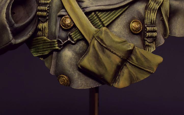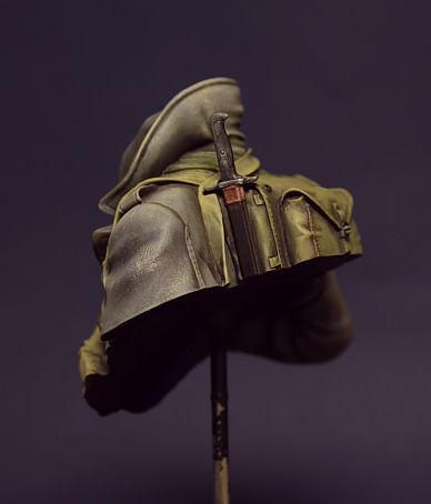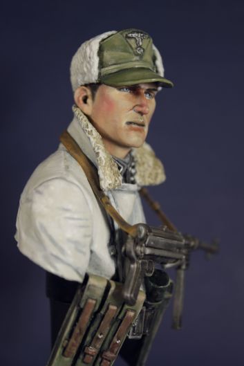 "Чтобы не заказывать бюсты,решили оттереть старый.Этот немец был раскрашен в декабре 2009г.Темпера ПВА,эмаль-металлики.Фотоссесия на память".