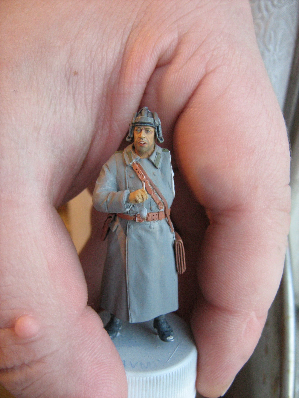 Перед праздниками,улучив момент,сел за покраску офицера.Успел сделать лицо и шлем.Предлагаю,друзья, взглянуть.Замечания приветсвуются.Фото при дневном освещении.