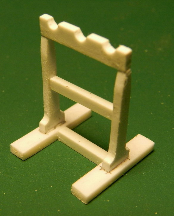 Далее сделал из полистироала: Сошки для укладывания банников, прибойника и разрядника: табурет для мелких принадлежностей (шнур. лядунка ит.д.; два откатных коротких (4-х фунтовых) клина.