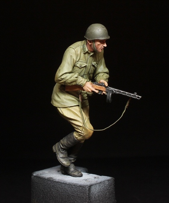 Всем привет! Работаю сейчас над фигуркой бойца РККА от "Танк" (второго из набора). В принципе дело близится к концу, осталось только убрать недочеты выявленные при съемке. Использовал для окраски лица тематический набор от АК, позже поделюсь своим скромным мнением.