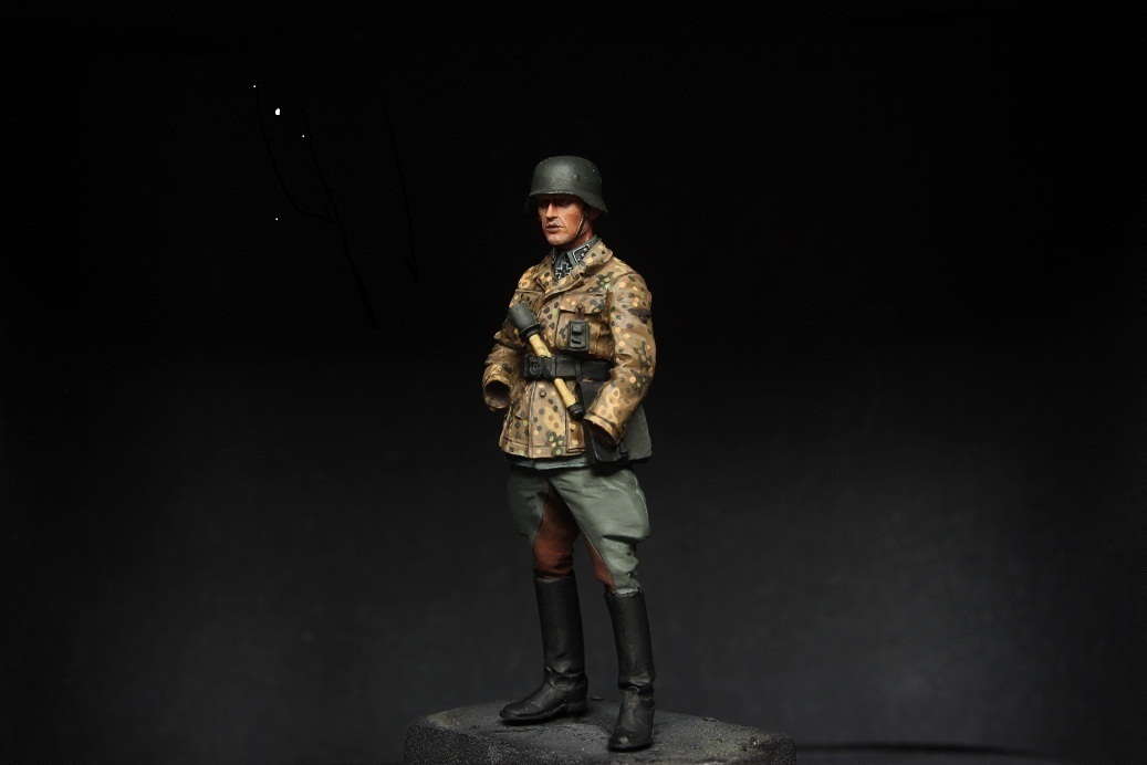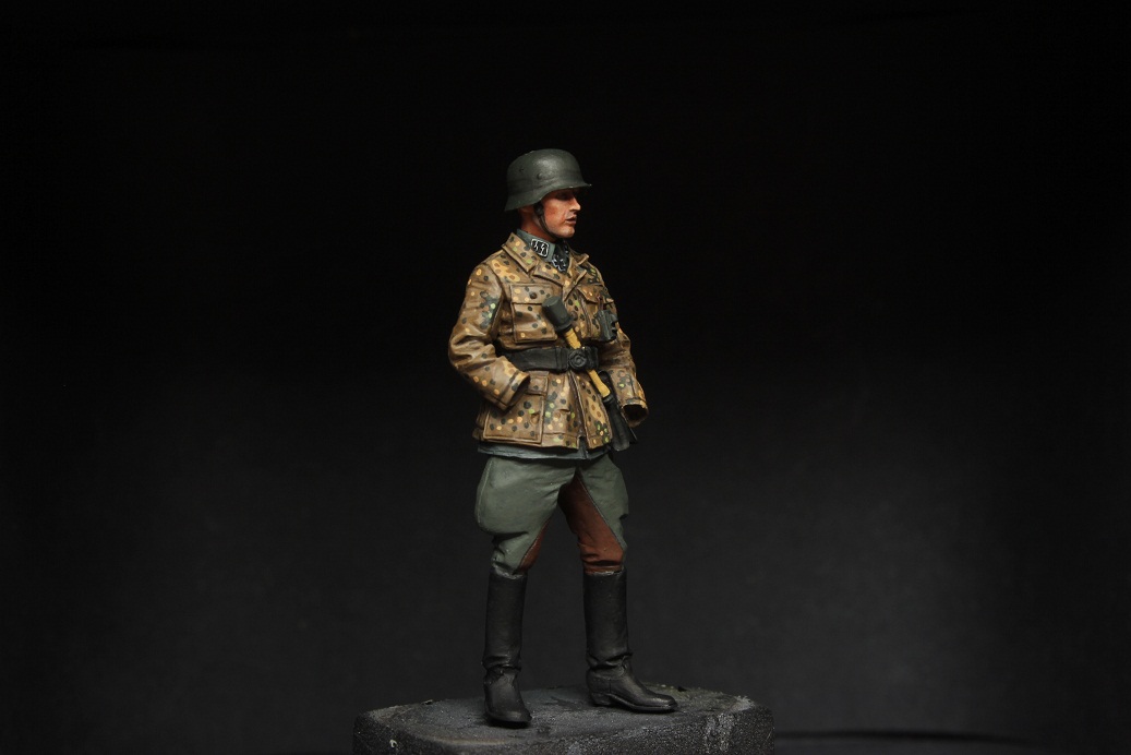 Давно не работал с камуфляжем,немного навык растерял. Оцените коллеги как выходит. Фигурка в процессе что-то можно подправить. Сама фигурка от Мантис, только голова Альпайновская.