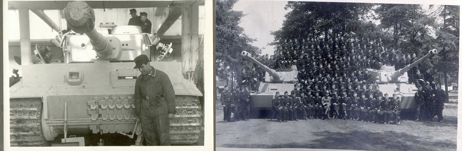 Кстати о белом. Вот фото из хроники. Приличного качества. На одном отремонтированный и СВЕЖЕВЫКРАШЕННЫЙ (не усвиняченный) тигр, а на другом два новых тигра из танковой школы. Вопрос в какой цвет они покрашены в Dunkel gelb или Weis?)))