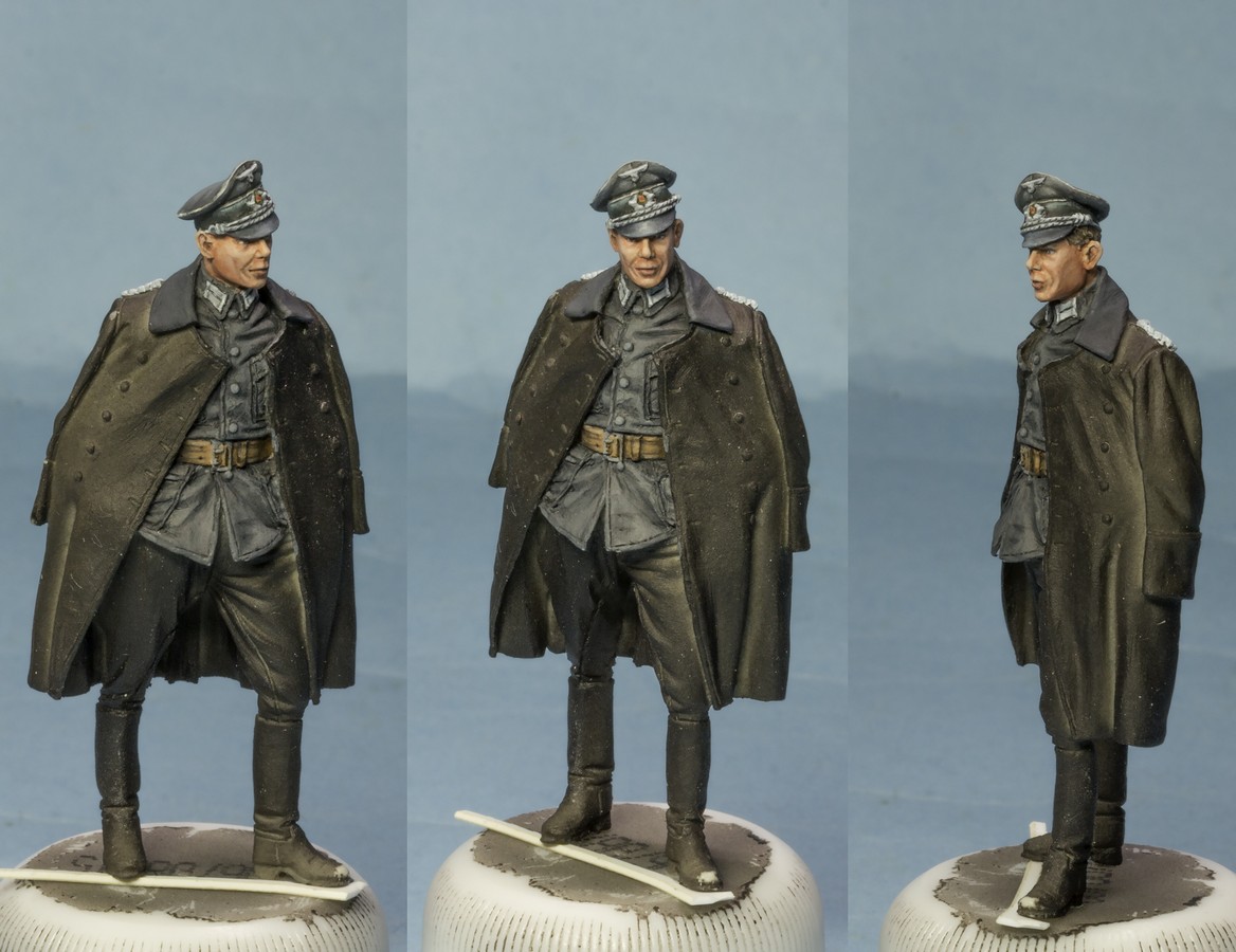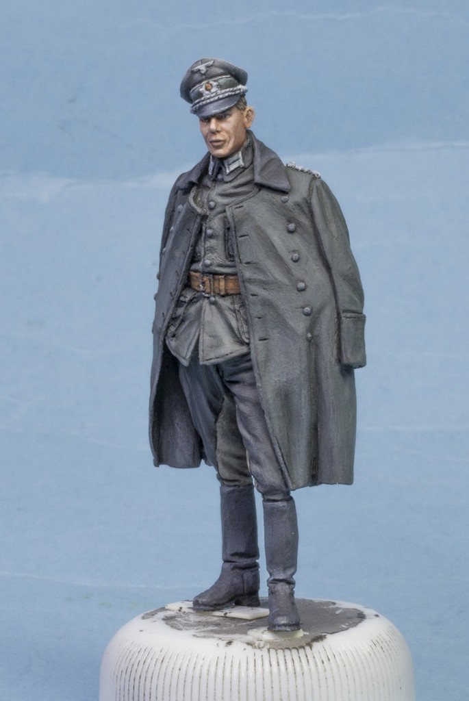 saleh Wrote:В рамках отдыха от модели танка начал раскрашивать других обитателей подставки. Вот на треть готовый герр майор. Готовы голова с фуражкой. Китель в процессе, остальное в грунте