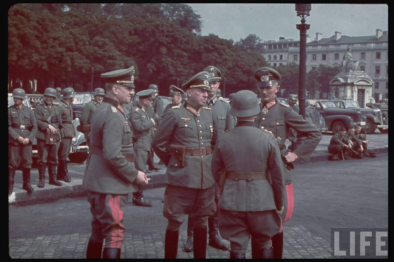 Мне кажется, что на фото из Life не все в порядке с цветопередачей. Да и вообще по фото немецкой форме в интернетах трудно определиться по цвету. Я в какой-то польской книжке видел фото одного кителя снятого при немного разном освещении: в одном случае серо-голубой, а в другом серо-зеленый....