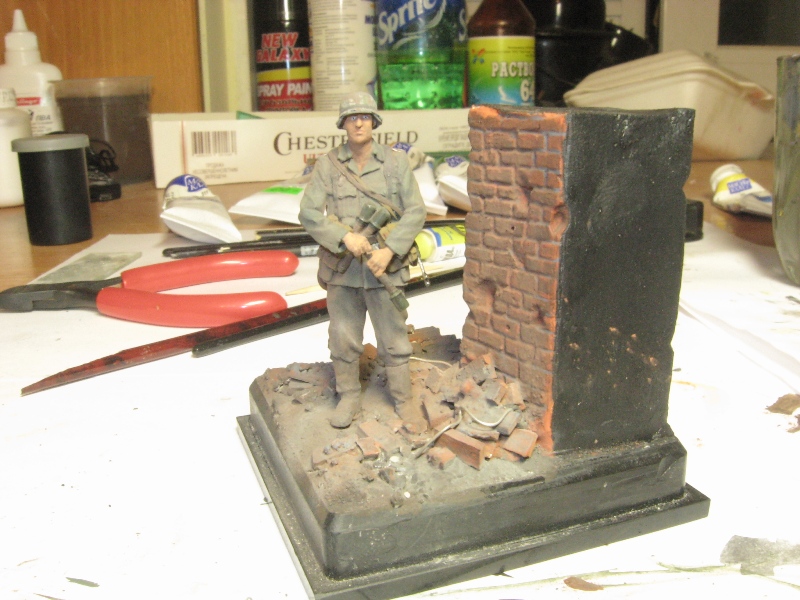 Совершенно верно, наверное так действительно должно быть. Но все элементы загрязнения нужно изначально прописывать, т.е. фигурка росписывается "испачканой" с самого начала. Тем самым одежда как бы пропитывается грязью, получаются плавные переходы и т.д. А натёртая пигментами миниатюра которая даже просто не росписана... ну это всё теже шалости что и подплавленый вертолёт брошеный на камушки в соседней теме.
