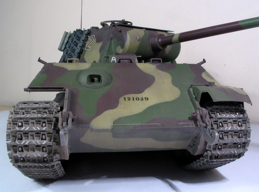 Привет. Воистину, сколько людей - столько мнений. Я вижу с левой стороны белую двойку на башне и возможно красную/тёмную тройку(семёрку) с белой обводкой в центре трака (может и обман зрения). С правой стороны последняя цифра - красная/тёмная двойка с белой обводкой. Соответственно возможно имеет место номер который начинается на чисто белую цифру, а вторая и третья цифра тёмная в обводке. Даже если учесть, что на траке номера нет, то номер начинается и заканчивается на двойку. Например № 202 или 272. Почему нет? Например в 1ТД в Венгрии была командирская Пантера с № 265 в этот период.