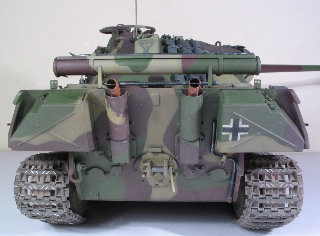 я вижу ты чем-то прошелся по машине, теперь яркость цветов камуфляжа приглушена и камо смотриться намного лучше, естественнее. Это мое ощущение конечно. Я бы посоветовал пройтись еще и по стволу и тубусу на корме, но более прозрачным "колером" (я не знаю чем ты это делаешь).