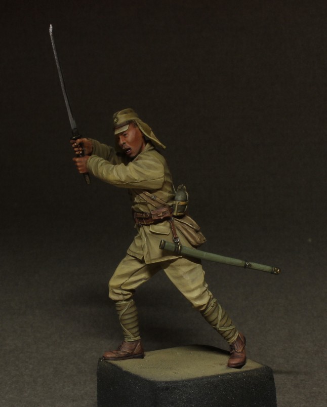На рабочем столе у меня уже есть небольшие наработки, но поделюсь пока фотками только одной фигурки, другие чуть позже. Первый японец на моей полке и первая фигура от Minisoldiers. Деталировка, складочки - отлично. А роспись судить Вам, я старался..