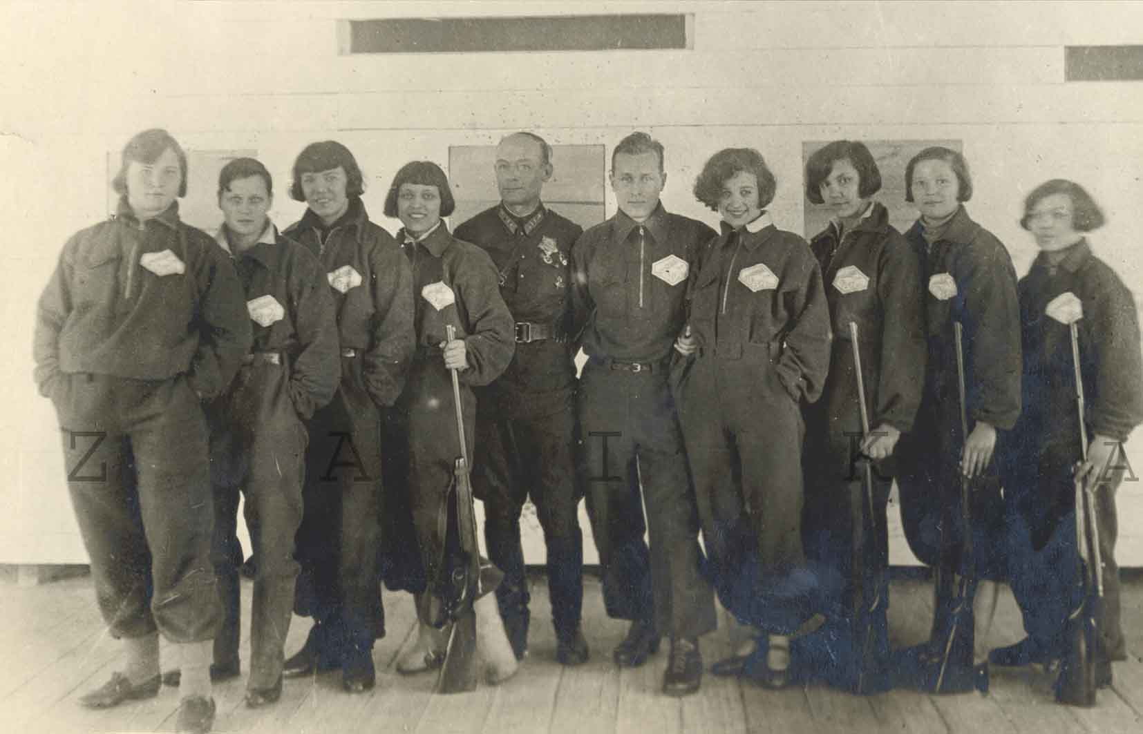 Вот, чтобы не быть голословным - предвоенное фото сборной ВВА по стрельбе, как раз в таких спортивных костюмах на молнии. Карманы, как видно, присутствуют. Спортивная верхняя одежда для армии изготовлялась темно-синего или коричневого цветов, для моряков я думаю больше подошел первый.))