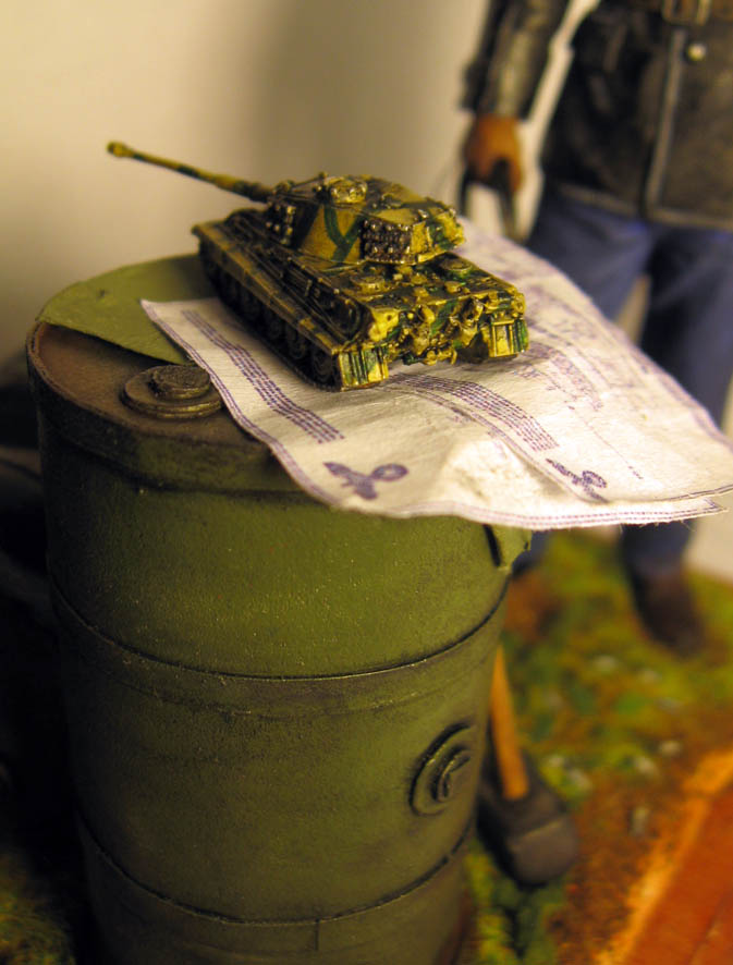 Здорово!Мне понравилось!Но:может быть лежачию бочку убрать?а то она очень много на взгляд принимает когда на фото смотришь,и фигурка с бочкой на которой танчик