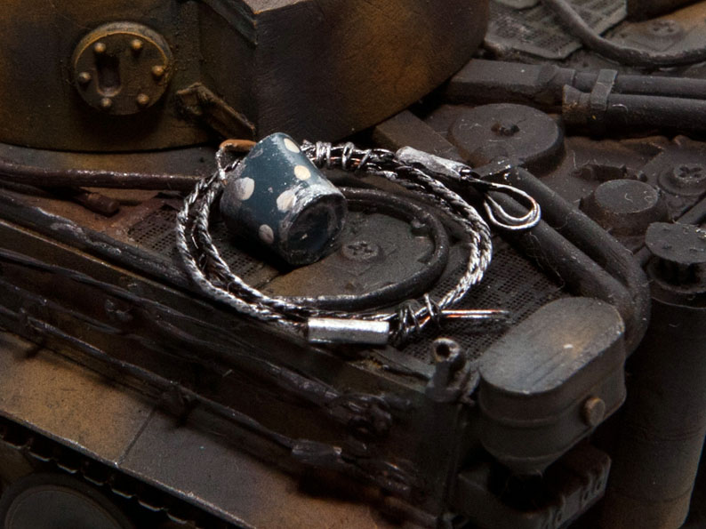 Как результат моей работы- явился танк Тигр- вполне себе военный, но с гражданским ведром, в крупный горошек, таким не уместным на войне.