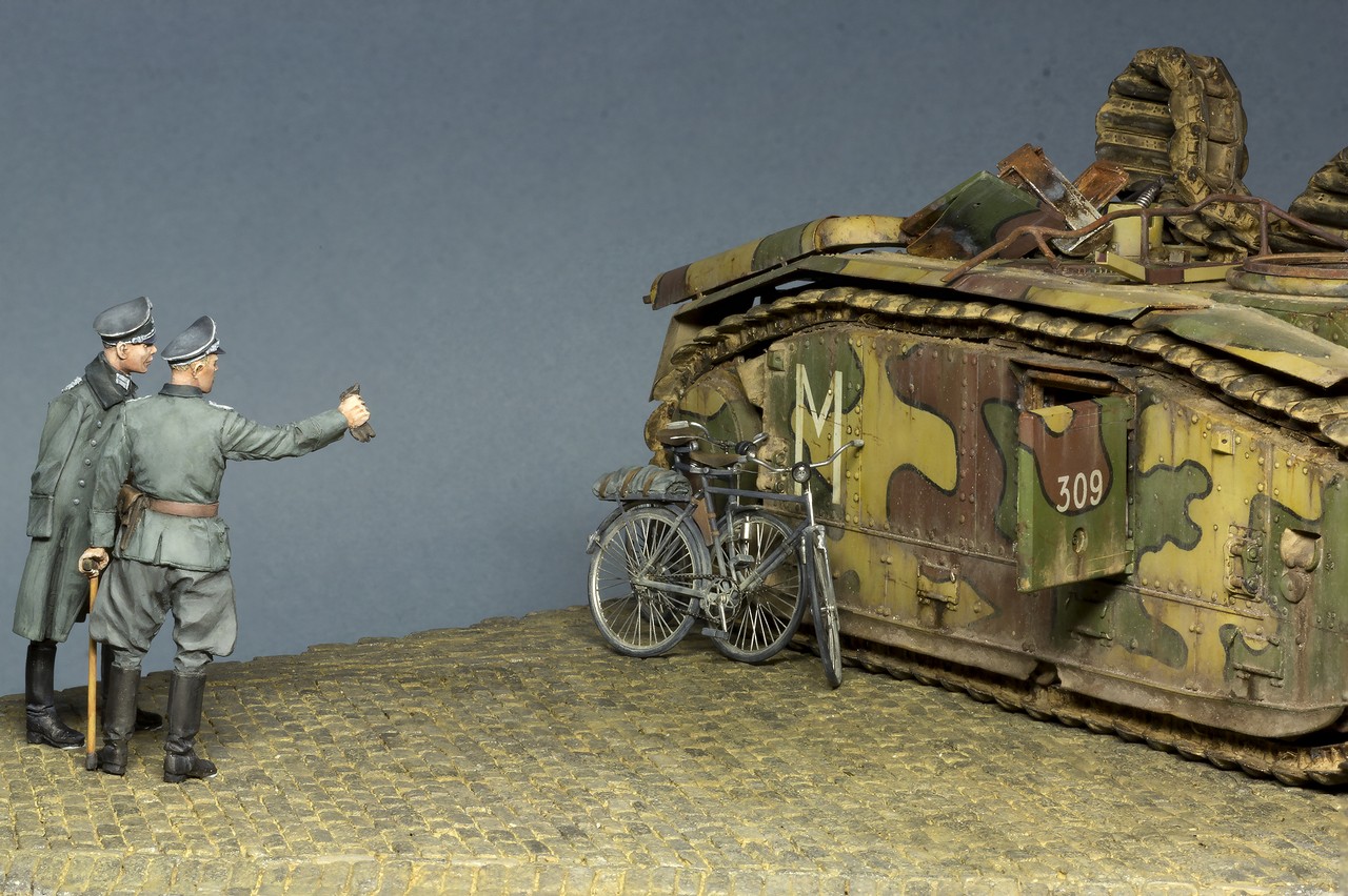 Боюсь, что с таким подходом по цвету в конечном итоге главными героями станут офицеры вермахта, а танк уйдет на второй (задний)план.