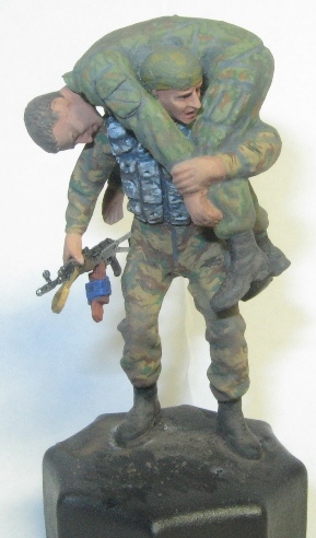 А на раненом я лепил костюм обычный армейский.Он у меня дома лежит такой я и по нему лепил.