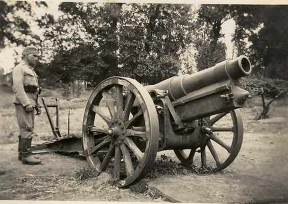 Станислав Кривошеев, С выложенной Вами фотографией орудия, это пока третья, которую я вижу. Судя по всему ( подверждается фотографией разбитого орудия с Первой мировой) это 6 дм. английская гаубица BL26-cwt MK1. Одна из модификаций.Передняя крышка люльки конусообразная. Было ещё два типа крышек.Но возможно я ошибаюсь.Может ещё кто подскажет.