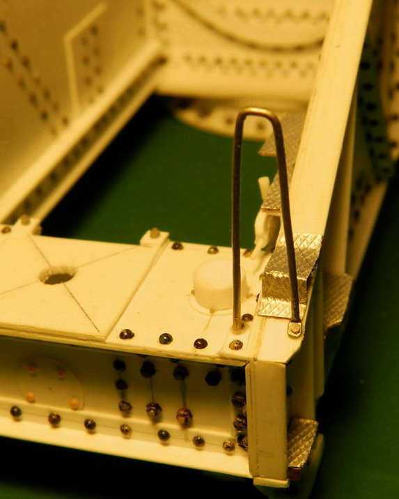 На гаубице два сидения для наводчиков с подножками. Основание сидений спаял. Остальные детали изготовил из полистирола и поставил сидения по месту.