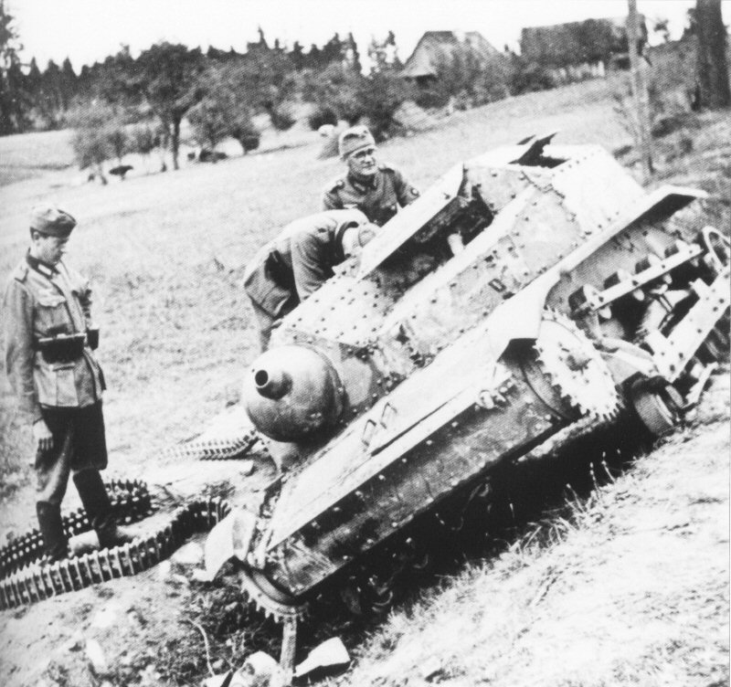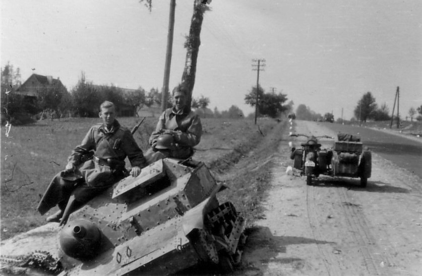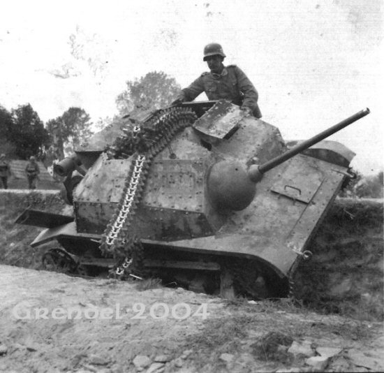 ITR, Учебная? а я думал тягач или что то вроде того,интересных-странных фото много с участием танкетки ,вот например, не разобрался судя по всему экипажи немцы? ну по нестандартным для поляков фарам точно должны быть немцы.Как я понимаю это уже их камуфляж серый с оливково-зелеными полосами?
