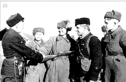 Геройски выглядит политрук с немецким автоматом