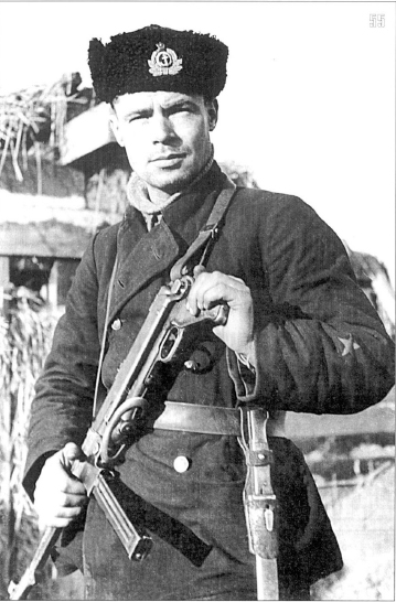 Дмитрий Шишков, Дим, сдается мне, что сие есть политрук. Звезда крупновата. Краб на шапке у него офицерский. Краснофлотцы его не носили. И ты знаешь, по приказу 1934 в ВМФ у офицеров были бушлаты. Они вроде бы чуть-чуть отличаются от матросских и старшинских, но если учесть, что это зима 42 (январь-март), а на фото этой серии разведка 7 БрМП ЧФ, то я не исключу, что у этого политрука обычный матросский бушлат с нашивкой политработника. Опять же свитер... Слушай!!! Я щас вспомнил, что за книга где он есть, щас попробую найти!!! Ай, момент!