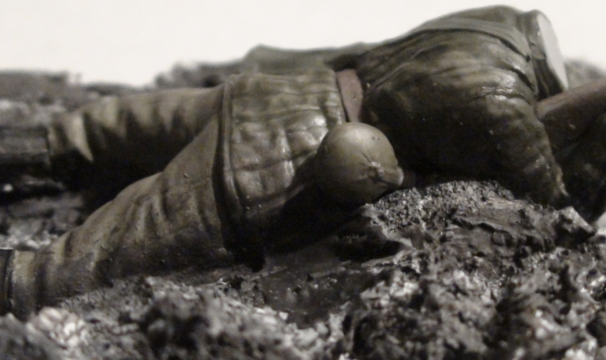 Антон Малкин, Имел в виду подгрязнить ее,да пару царапин сделать..Раз вокруг грязь не сможет солдат и амуниция чистой оставаться..Да кстати тут уже говорили по поводу фляги..не смогла бы она так висеть на ремне,тем более полная.Имхо надо оторвать и приклеить чуть чуть под другим углом ,чтоб дно самой фляги в землю смотрело,да еще если и земли касаться будет не чего страшного...правдоподобнее будет.Так как все таки литр воды ,что то да весит,не так ли?