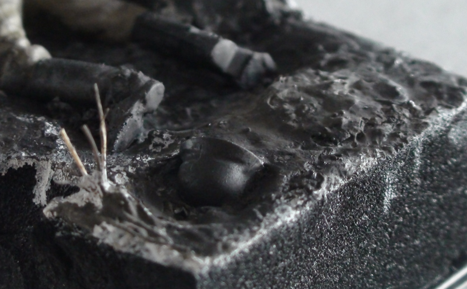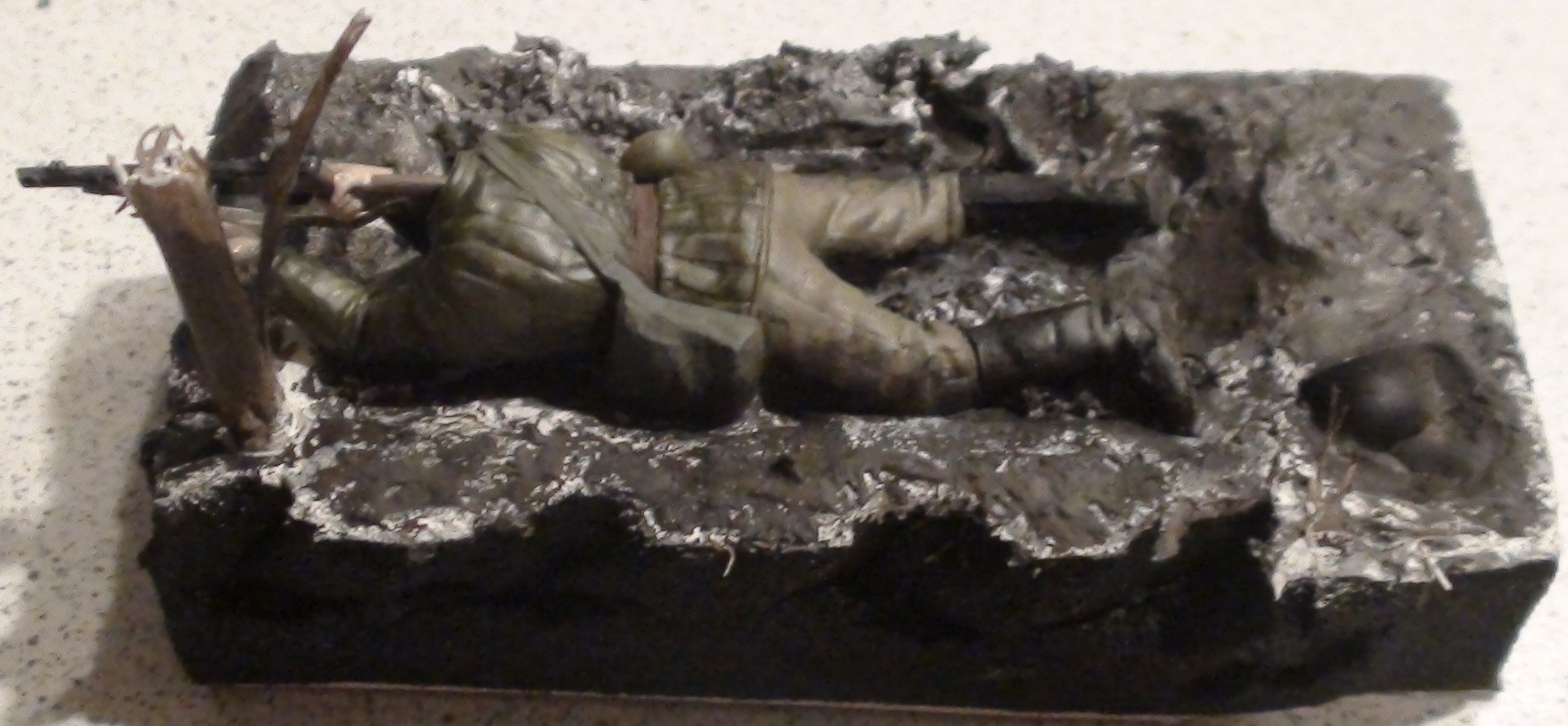 Добавил немецкую каску в лужу (или грязь), растение (засохший цветок) перекрашу.
