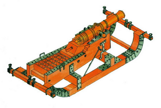Качество работы безупречно.Возможно,не помешала бы некотороя тонировка ствола и добавление потертостей. Жаль-что отсутствует декор на орудиях-который в этом историческом периоде просто необходим. И хотя для многих Висковатов-уже не исторический источник-в нем четко указывается,что вид орудий сохранен из предыдущего царствования,а уж там-то орудия не страдали отсутствием такового.