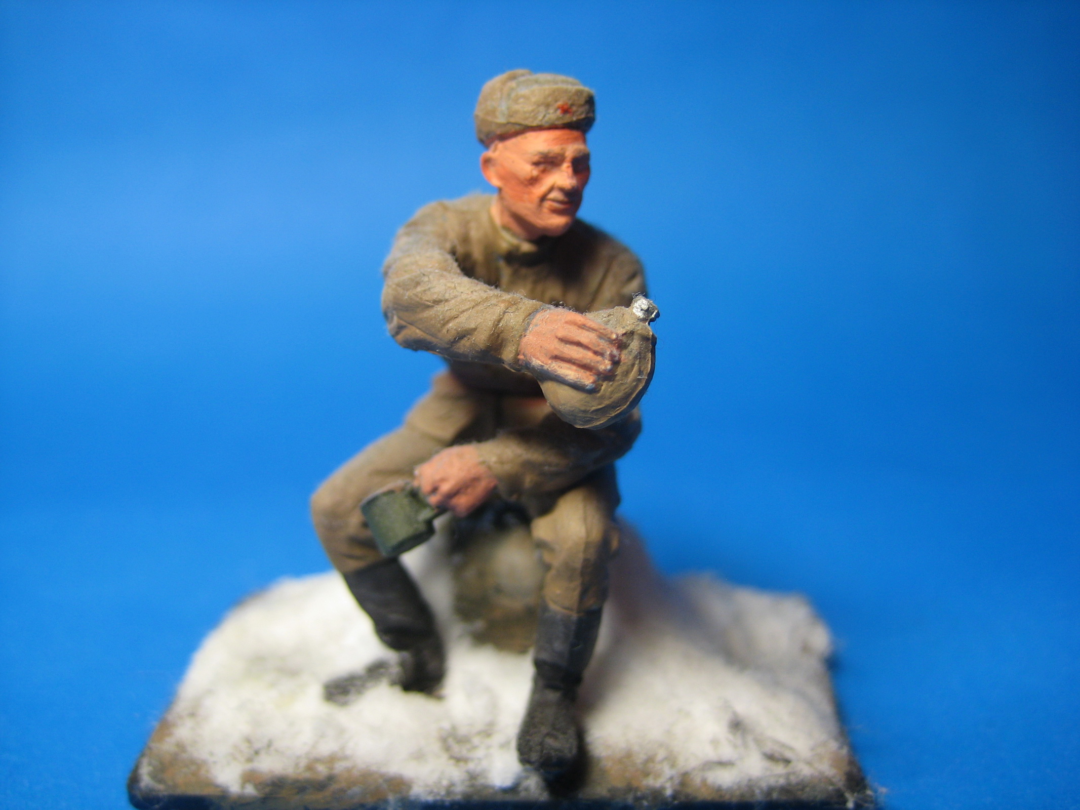 Отпишусь и я. Нам скрывать нечего. Самые первые солдатики не сохранились. Я был в 5 классе. Это годы 92-93. Звезда только появилась. Первыми были Пехота №2. Красилось на литниках гуашью, а т.к. литник - розовый, то тело не красилось. Тем более глаза. Мама покрывала все это толстым слоем мебельного лака, т.к. гуашь пачкается. На кусках пенопласта я и делал свои диорамы. Убожество редкостное, но все друзья писали кипятком. Помню набор с Зис-3. Он был из зеленного пластика. Так я и форму не стал красить, зеленая же, а лица розовым прошел. Были еще из пластилина на брестскую крепость слепленые бойцы, шапки у них были из бумаги и оружие тоже. Я вообще много вырезал и сам делал разных бумажных плоских солдатиков. Так как денег не было, то все имеющиеся солдатики были покрашены по выше указанной технологии. Потом были школа, переезды, институт. Переодически меня клинило и мвместо пиво - девки - рок-н-ролл я булавкой счищал краску с солдатиков и пытался их красить, теперь уже эмалями. Они где-то в коробках еще все поломанные и разобранные лежат. Думал я их перекрашу