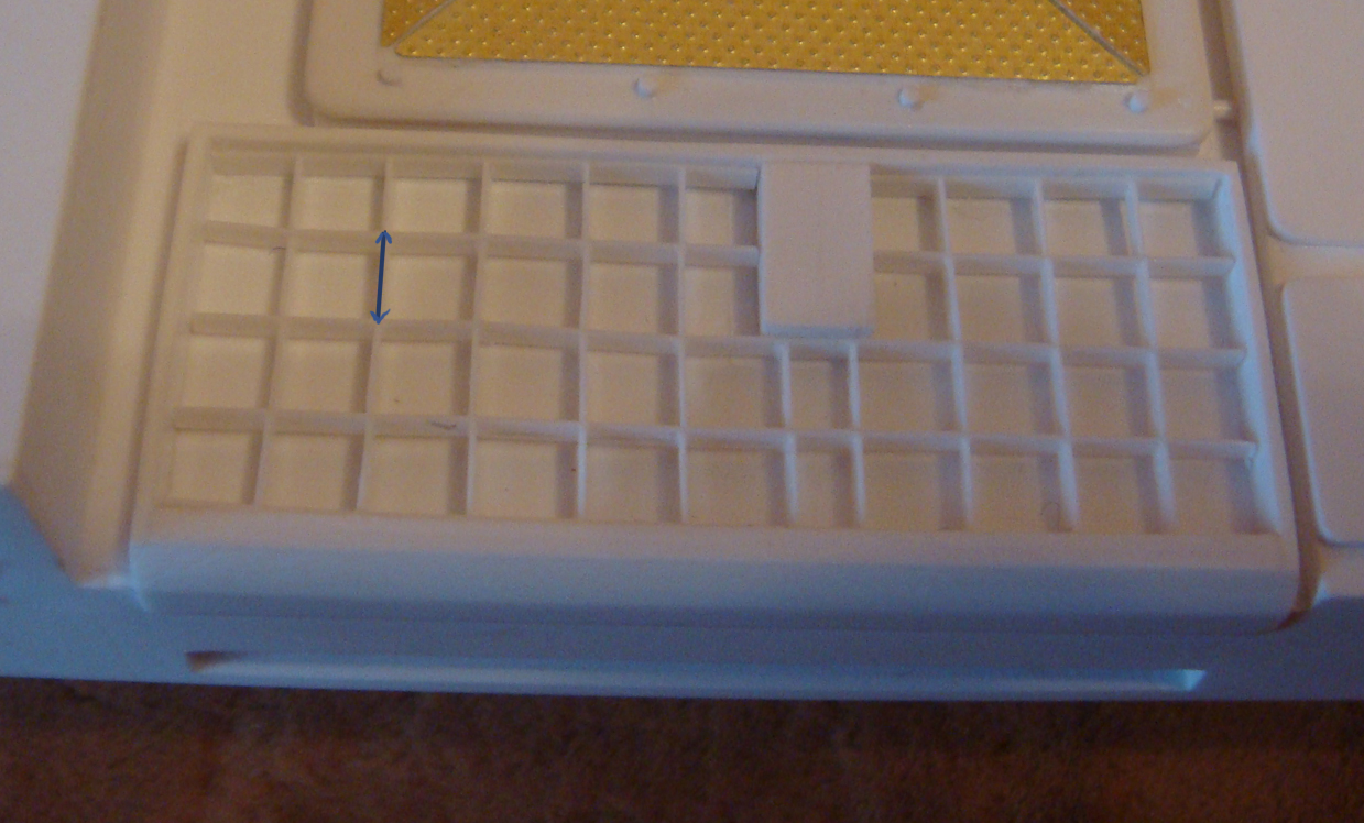 Andrey Tolkalin,размер ячеек большой 4,9х4,9 мм. Делал просто, для чтобы проверить размеры и ориентацию, на модели будет стоять травленные и тонкие решетки. Технология моей примерки проста, отрезал 5 шт. полосок длиных шириной 1мм.,0,3 мм тольшиной, потом сделал разметку модельным ножом (насечки)куда клеить мелкие кусочкки, нарезал такой же толшены и ширины кусочки по 4,9 мм длинной и начал их склеивать, занятие муторное, три часа ушло.