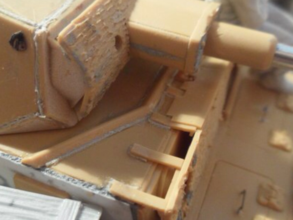 Циммерит получился крупноват, правда. Но для работы с паяльником по пластику... в общем, отважный вы человек, я так и не рискнул. Я циммерит обычно из миллипута делаю - риск испортить в разы меньше. Да, так вот, о циммерите. Добавьте сколов на нем до ровной брони. Хотя бы немного. Все-таки машинка не прямо из гаража. В ту же тему - слегка помните надгусеничные полки и решетки над воздухозаборниками.