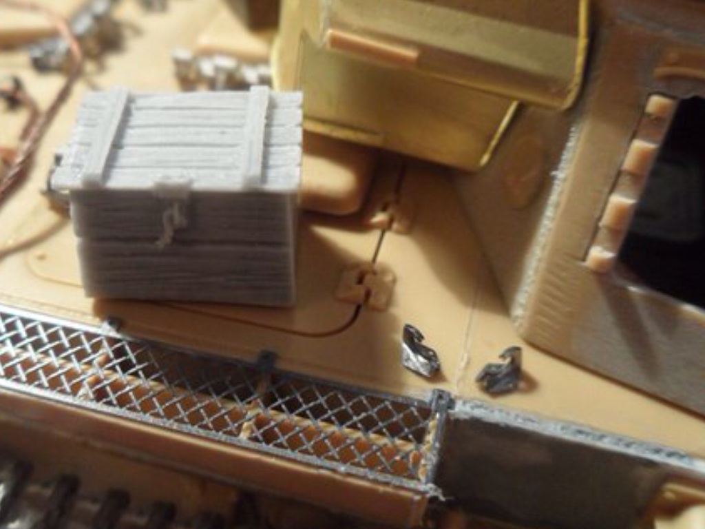 Andrey Tolkalin, а, ну конечно виньетка планируется(в предыдущих фото была примерная композиция)... А насчет скарба, то танк в конечном результате не двигается, идет как бы приготовление этого танка-минера и экипажа к "последнему" заезду. Может быть, что лишние ящики уберу.