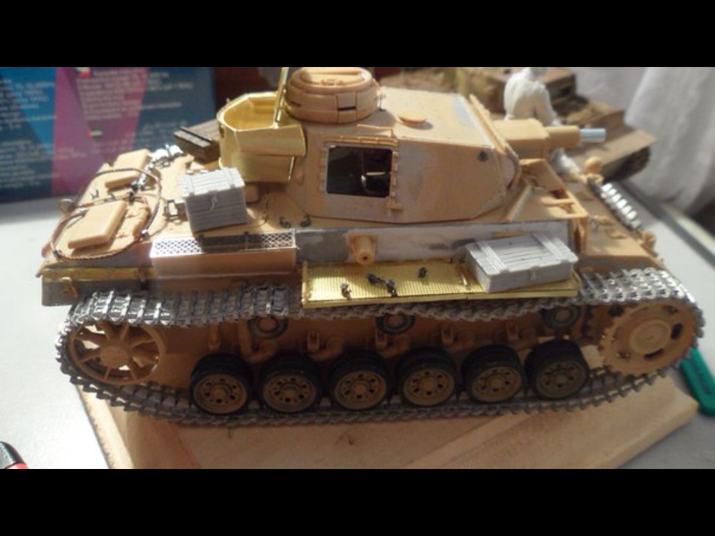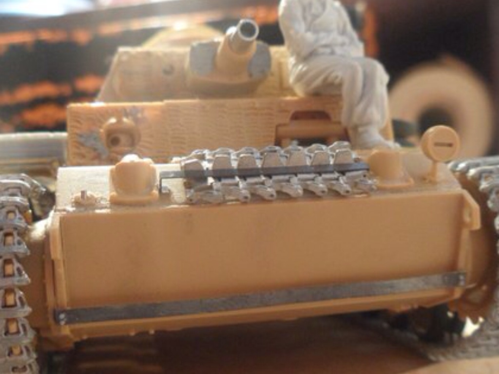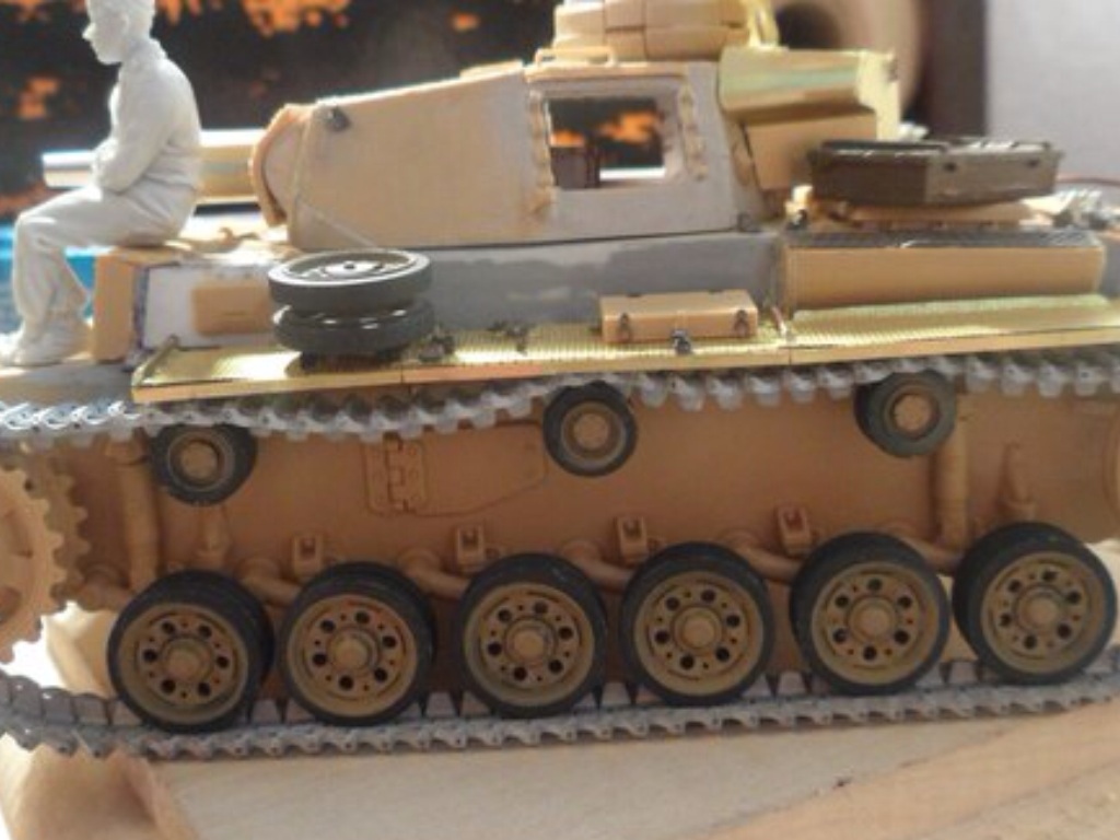 Поскольку тройки не мой конек - по матчасти ничего не скажу, а вот по скарбу на корме и на надгусеничных полках советую посмотреть кино-видео материалы с едущими танками, тогда возможно встанет вопрос - а может стоило закрепить все эти ящички, траки и т.д., чтобы смотрелось реалистичнее? Они ведь послетают в течении первого полчаса езды?