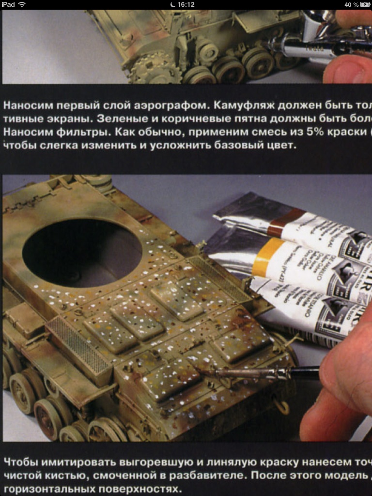 А что можно сказать? Посмотри на свои фото и сам увидишь: циммерит -это что то новенькое! где швы нужны, там их нет, где не нужны есть, нехватка болтов от Master Club, разбросанные траки - они же попадают,а травленка от эдика - это вообще .......... надгусенечные полки - что с ними? параллельно оторвали сразу с двух сторон?