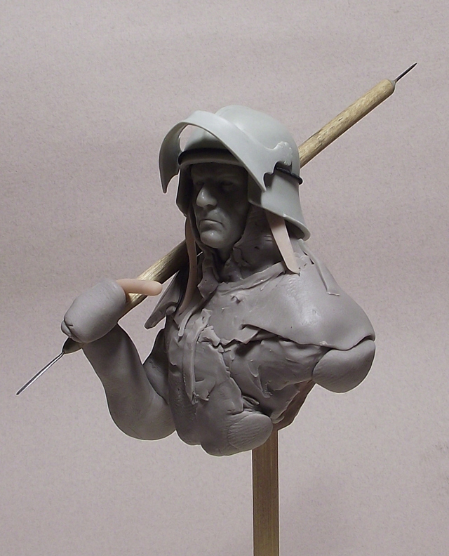 В процессе. Бюст 1/10. Пластика, мэджик. Пулемет - растишка.