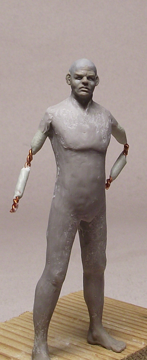 Хорошо получилась фигурка, но кисти рук смотрятся слабовато - немного пластилиновыми, не хватает им анатомии. Ещё черты лица крупноваты - это добавляет некоторого гротеска и мультяшности и уводит от реализма.