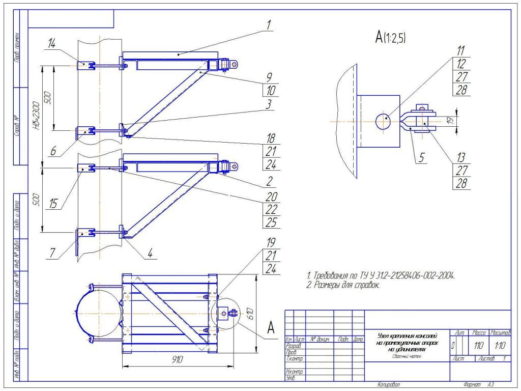 Общий вид на консоль. Правда на этой опоре она из трубы, а не "Н" - образный профиль.