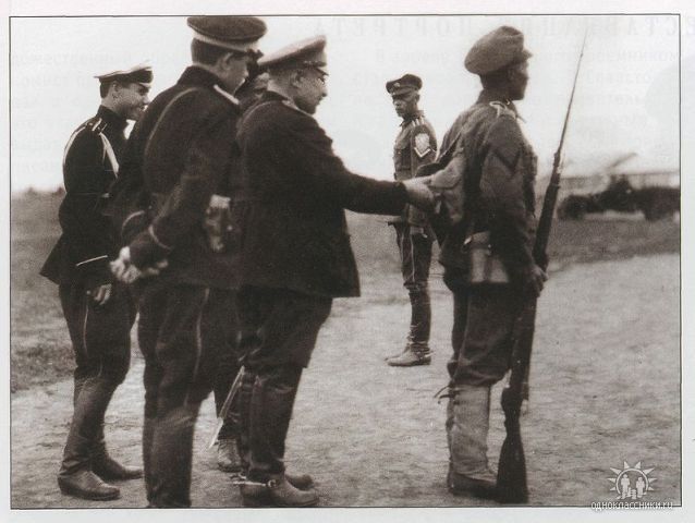 PROHOR Wrote:vyatman Wrote:Чёрно-красные шевроны ударников сохранялись иногда и в Белой армии (на правом плече), но они встречаются на фото довольно редко.
