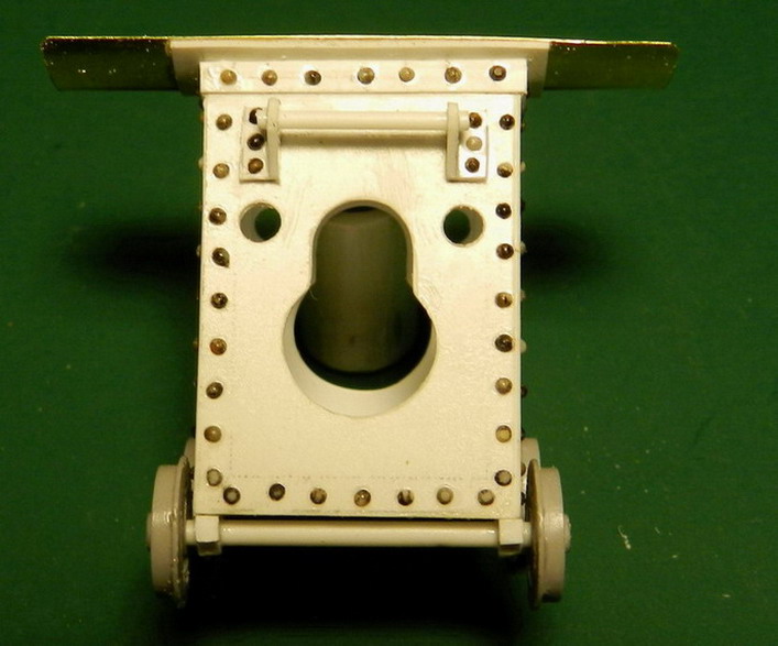 Склеил из полистирола основание для орудия. Хотел паять из металла, но не нашлось необходимой толщины.