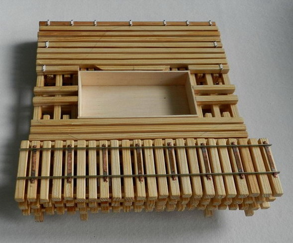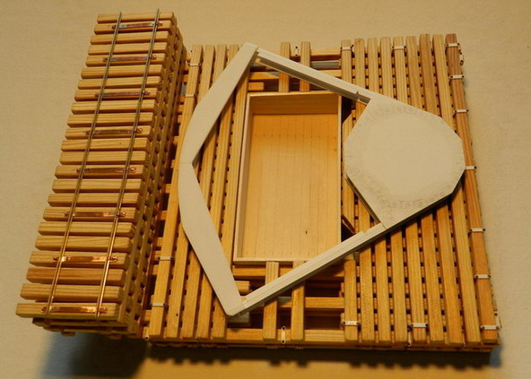 Наконец отмучился с деревянным основанием позиции. Брусья напилил из сосны. Склеил на ПВА и в некоторых местах скрепил гвоздиками. Симитировал болтовые соединения. Рельсы взял от узкоколейной ж.д. в М1:87.Рельсы могли бть или профилированные (как у меня) или в виде уголков. На шпалах могли лежать дугой )чаще уголковые) или прямо. На хронике есть оба варианта. Плеть сделал по типу крепостной ж.д. шириной 750 мм. Спаял рельсы между собой полосками из меди. Затем прикрепил на костыли к шпалам.